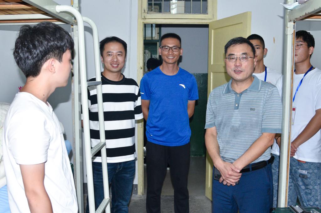 学院领导一行走访了东6男生和东1女生全体新生寝室。在新生宿舍,姚勇对大家的到来表示热烈欢迎,与他们亲切交谈,了解同学们对学校的看法,是否存在困难。嘱咐新生同学要提高安全防范意识,注意人身、财物和信息安全,谨防上当受骗。希望同学们调整状态,积极融入到班集体,尽快融入到大学的学习生活中。
